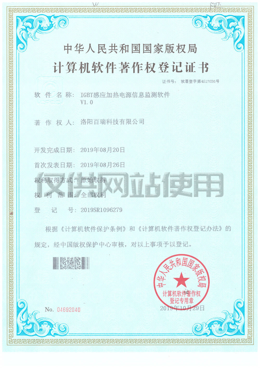 計(jì)算機(jī)軟件著作權(quán)登記證書1